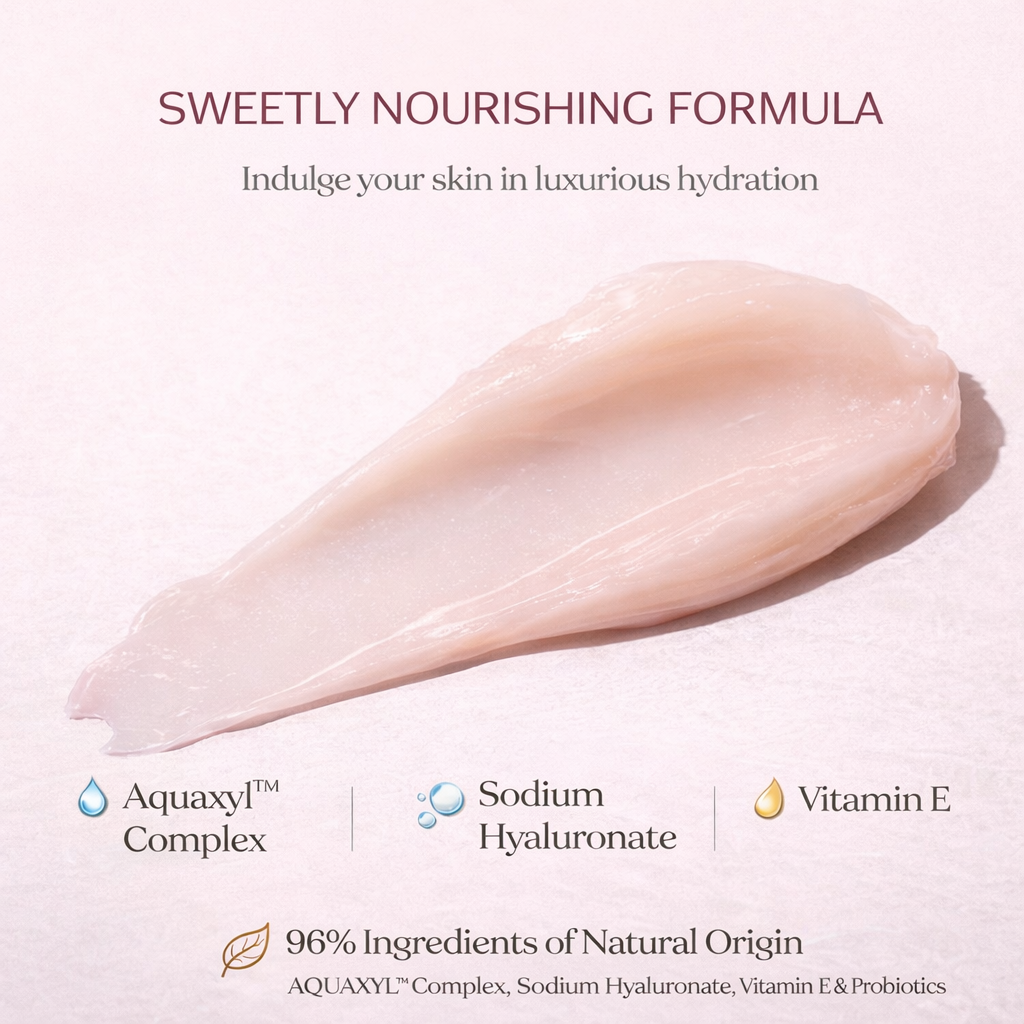 Aquaxyl™, Sodium Hyaluronate, Probiotics, Yogurt Extract, Squalane, Vitamin E, Panthenol