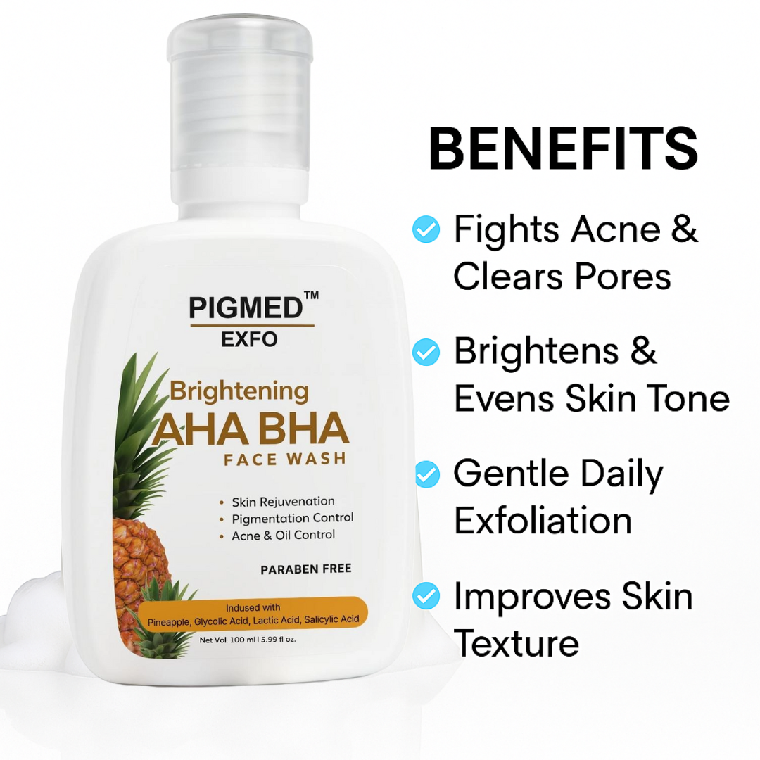 ✔ Daily Exfoliation Without Dryness – AHA (Glycolic & Lactic Acid) + BHA (Salicylic Acid) gently remove dull buildup